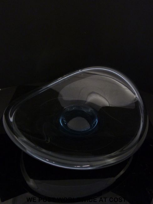 Holmegaard glass bowl with blue tint signed to base Holmegaard 19259 (38cm in diameter)