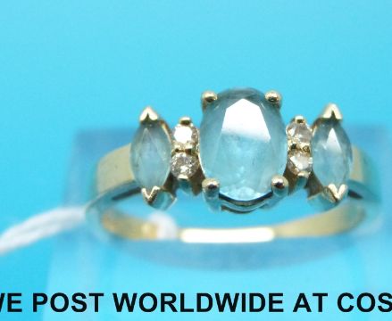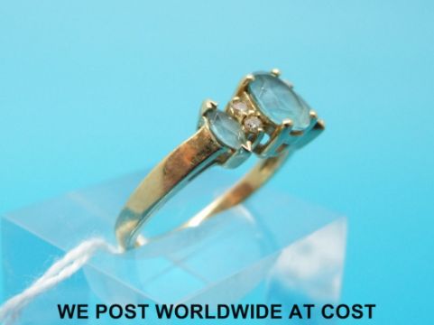 A yellow metal ring marked 14k set with topaz and diamonds, marked 14k (size N)