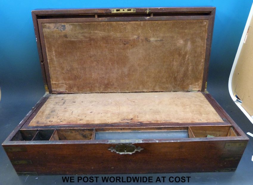 An unusually large 19thC brass bound mahogany writing slope with side drawer and fitted interior. Originally belonging to the Weeks family of Chew Stoke (bakers) (width 66cm)