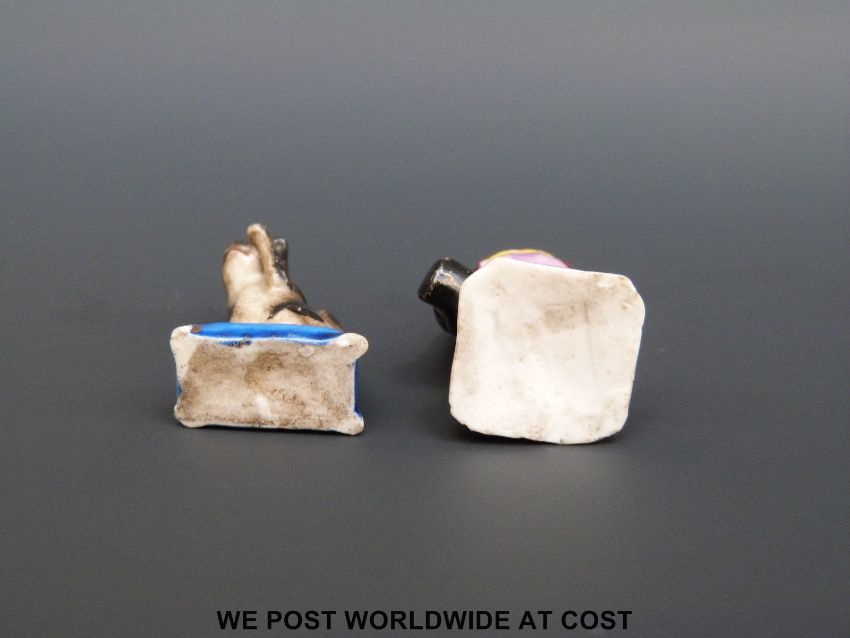 Two 18thC miniature figures, a cat and gentleman, probably Chamberlains Worcester, Meissen or Rosenthal (cat 3cm tall)