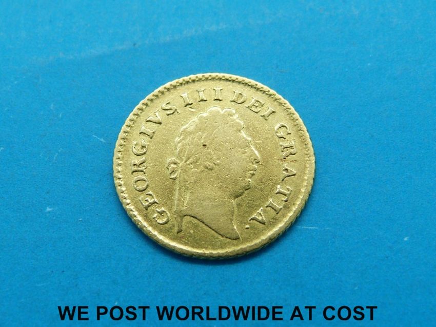 A George III gold quarter guinea 1799
