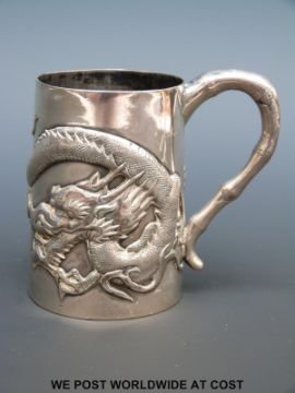 A Wang Hing Chinese silver tankard with embossed dragon decoration, height 8cm (128g)