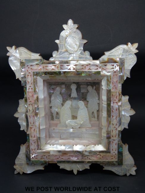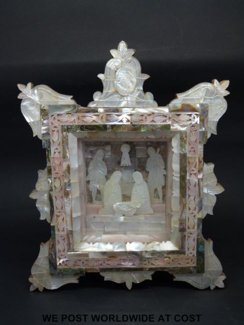 A mother of pearl Holy Land nativity scene, height 20cm