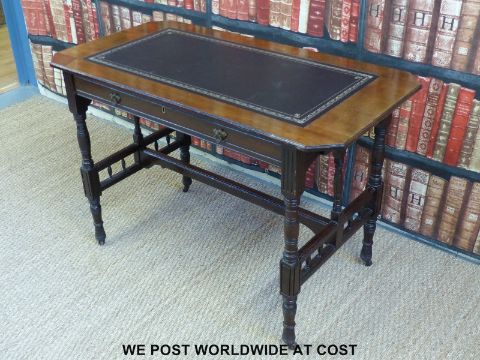 A mahogany leather inset ladies desk with single drawer (width 107cm, depth 55cm, height 72cm)
