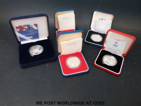 Five cased and certified commemorative silver crowns, one Cordiale Entente Centenary no. 00703