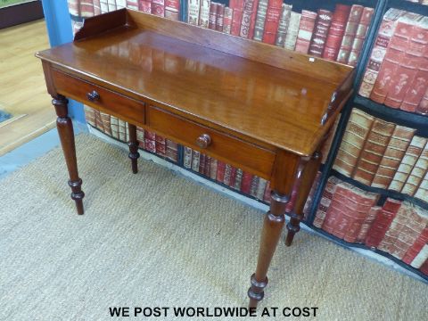 Victorian mahogany wash stand with two drawers and turned legs (width 107cm, depth 51cm, height 78cm)