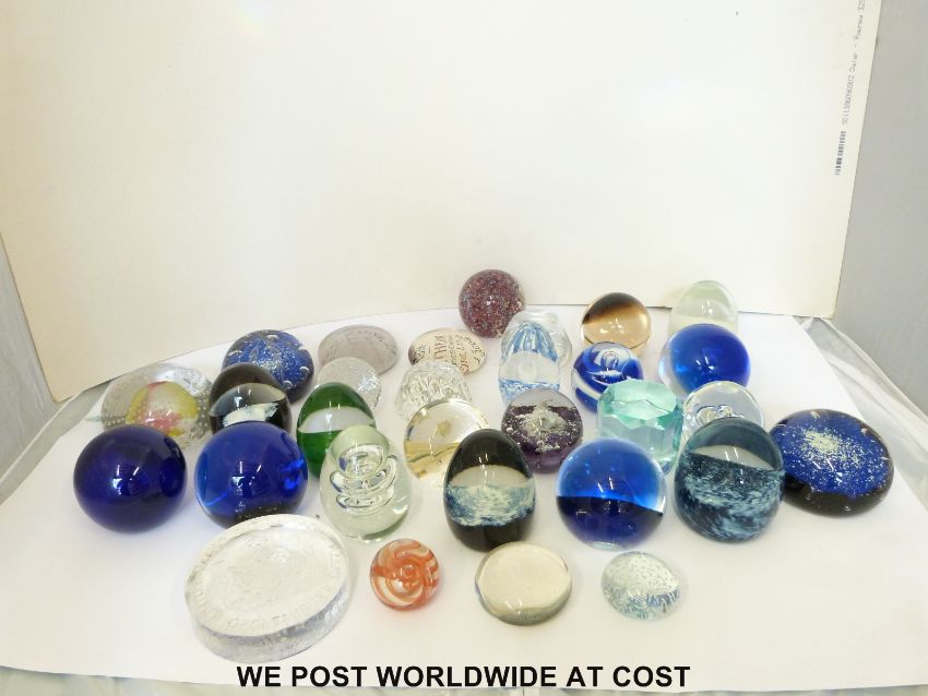Thirty various multicoloured and clear glass paperweights including control bubble, commemorative, etc.