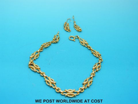 A pair of yellow metal earrings and a matching bracelet (16.9g)