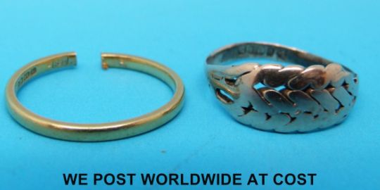 A 22ct gold ring (2.4g) and a 9ct gold ring in a plaited design (2.3g)