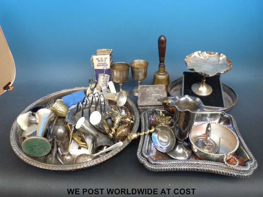 A quantity of silver plated items to include tray, entree dishes, trinket box, cutlery etc