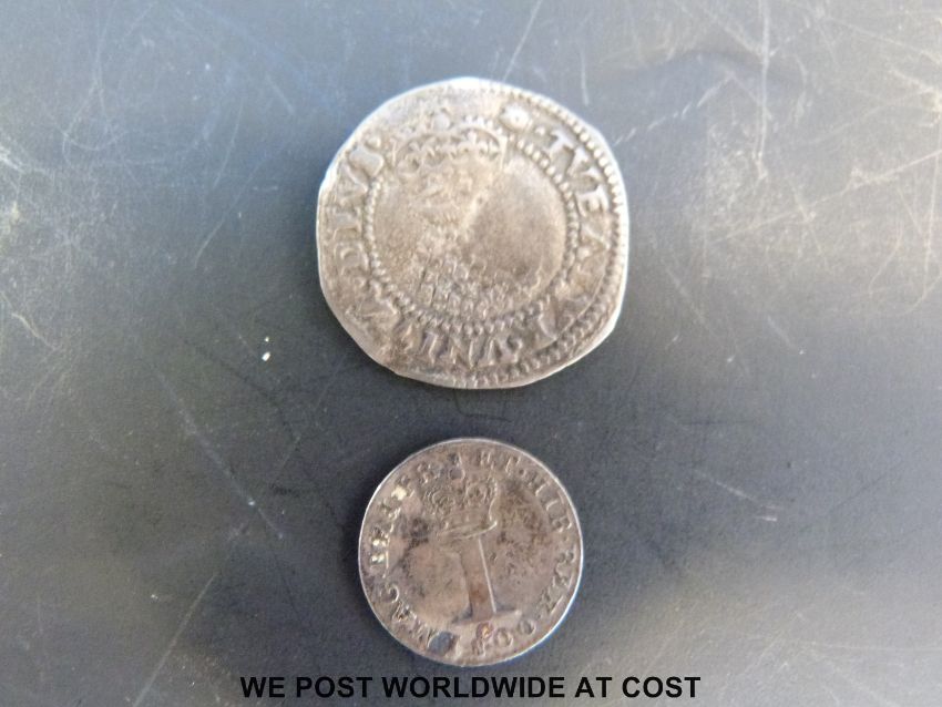 A George II Maundy penny together with a James I half groat