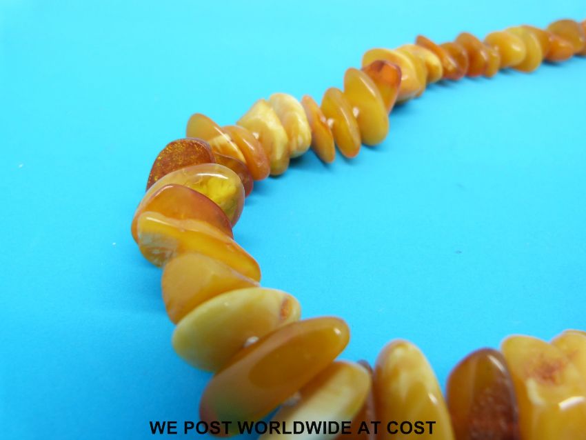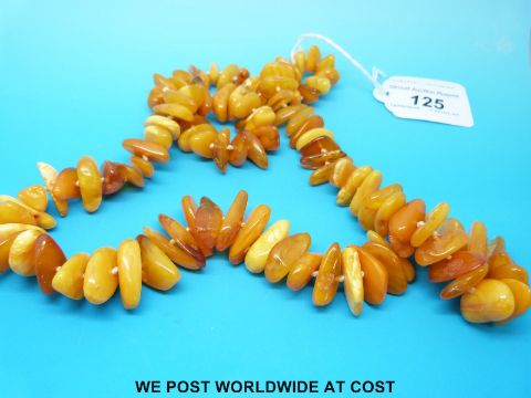 An amber necklace consisting of over 100 irregular shaped beads, 68cm long (73g)