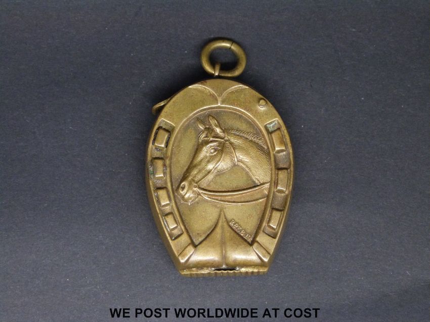A novelty vesta formed as a horse's head within a horseshoe, stamped Rd 3819, height 4.5cm