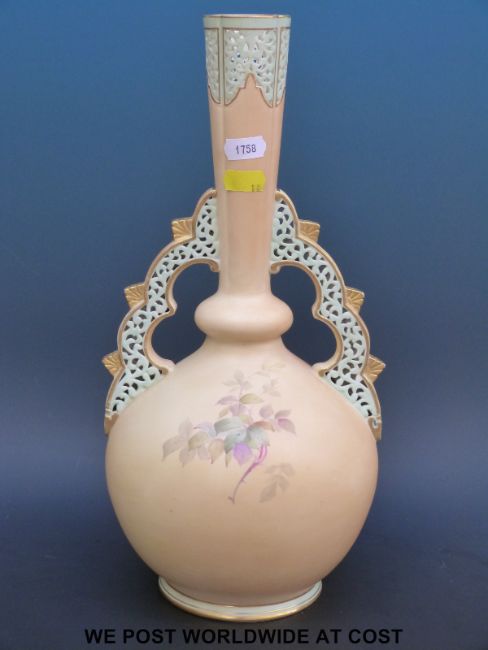 A Grainger Worcester vase with pierced decoration and painted flowers G60/6020 (37cm tall)