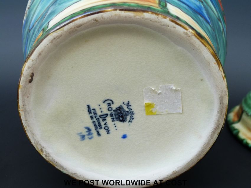 A Crown Devon jug and bowl decorated with sailing ships, jug 28cm tall