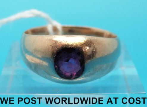 A yellow metal ring set with a ruby (size O)