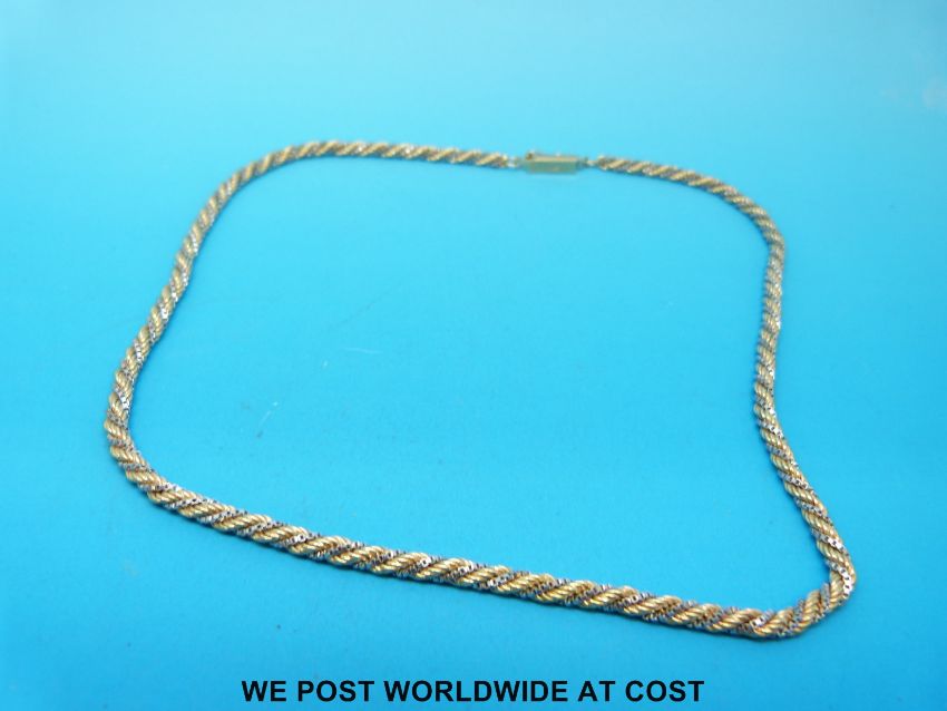 A bi-coloured 9ct gold necklace in rope twist design (10.6g)