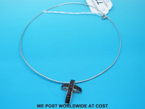 An 18ct white gold necklace with an 18ct white gold pendant set with black diamonds in a cross by Stephen Webster