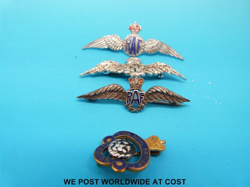 A silver RAF brooch, two other RAF brooches and a British Legion example