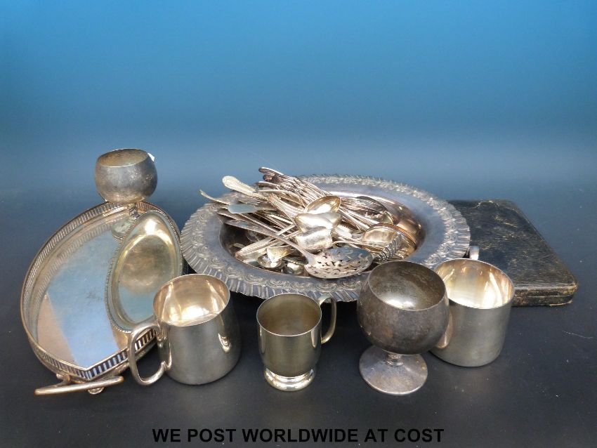 A quantity of silver plated items to include oval bowl, cutlery, goblets, cased manicure set etc