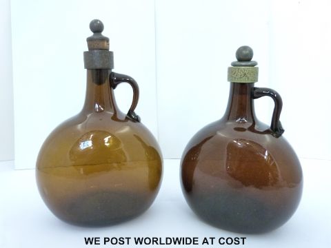 Two 19thC brown glass carafes, tallest 22cm