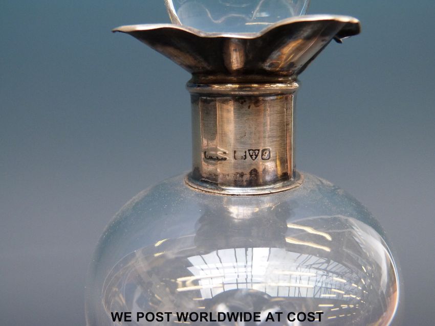 An Edward VII hallmarked silver mounted glug decanter, Chester 1909, maker's mark rubbed, height 20.5cm