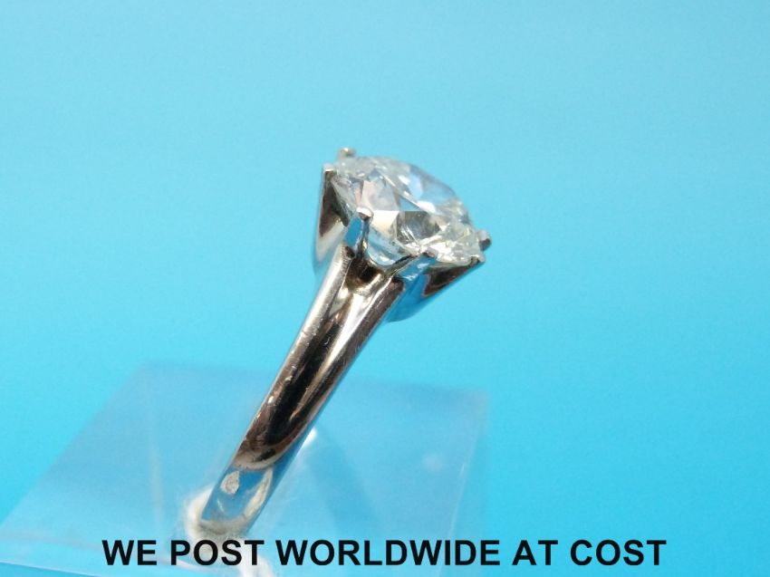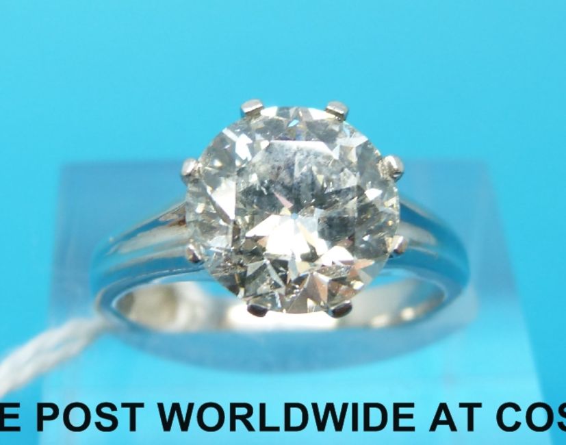 A platinum ring by Philip James, Bath, set with a round brilliant cut diamond of approximately 3ct (size M)
