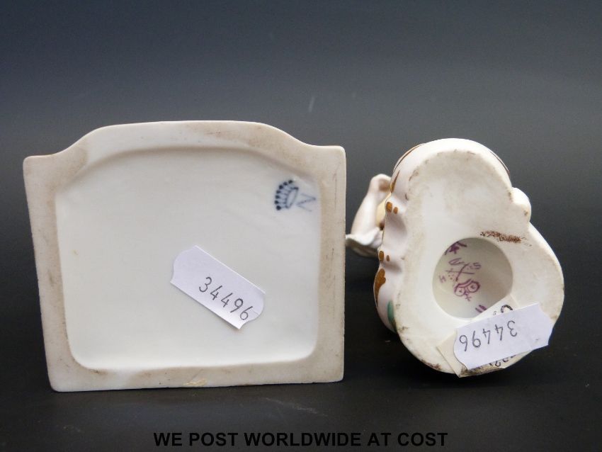 A 19thC Crown Derby child figure and a continental figure after the Meissen original