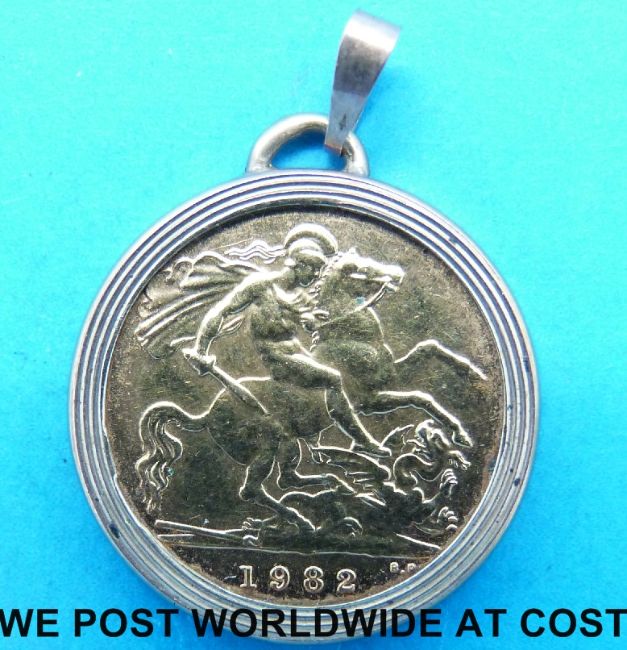 A 1982 gold half sovereign in mount (4.7g)