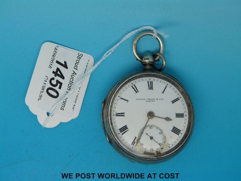 A Victorian hallmarked silver pocket watch marked Walter Wells and Son Stroud, to dial