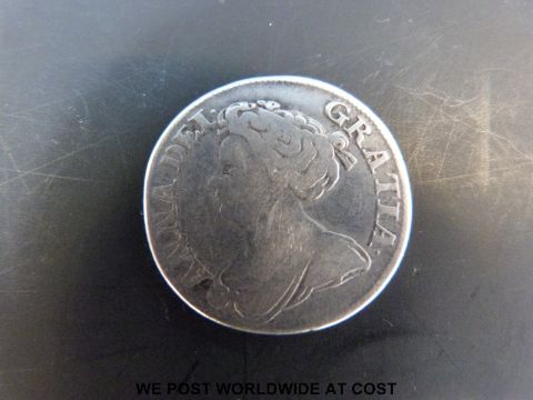 A Queen Anne 1711 4th bust shilling, plain in angles, near fine