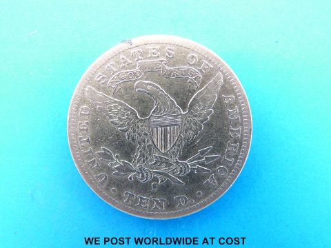 An 1887 gold ten dollar coin