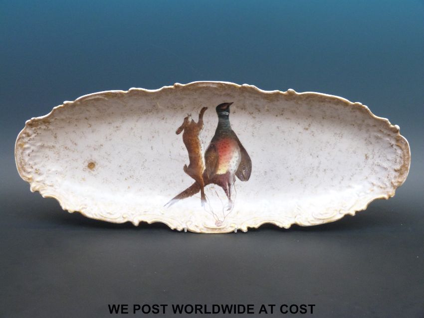 A large Limoges oval platter with gadrooned edge decorated with a hare and pheasant (60 x 24cm)