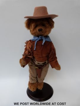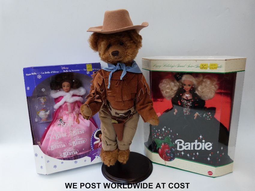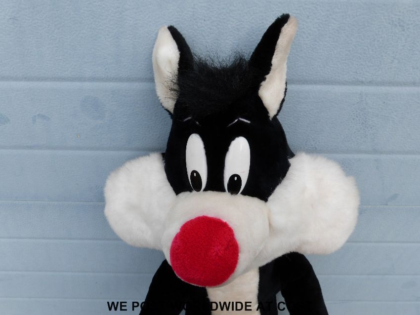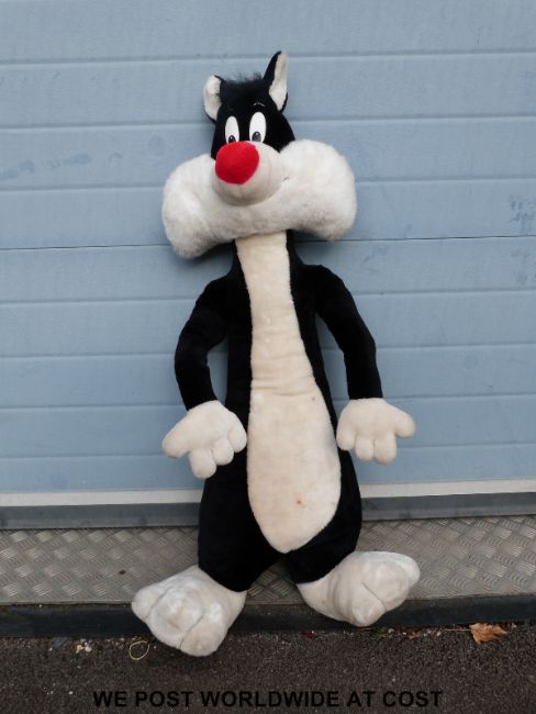 A mohair John Wayne bear together with two dolls, both in original boxes and a large Teddy bear in the form of Sylvester the Cat