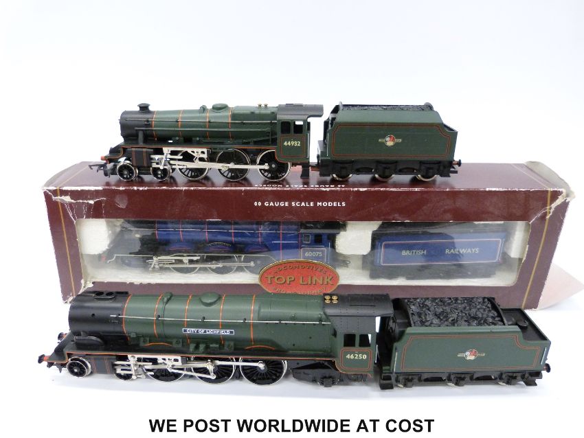 Three Hornby 00 gauge locomotives limited edition, Top Link BR 4-6-2 Class A3 'St Frusquin' R2036, limited edition BR 4-6-0 '44932' and BR 'City of Lichfield' 46250, all in original boxes