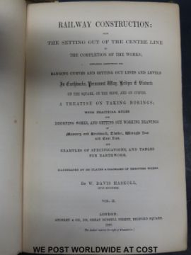 W.D.Haskoll, Railway Construction for the use of the Engineer Contractor etc . (London, Atchley and Co, 1857). Volume 2, green boards, gilt lettering to front board.