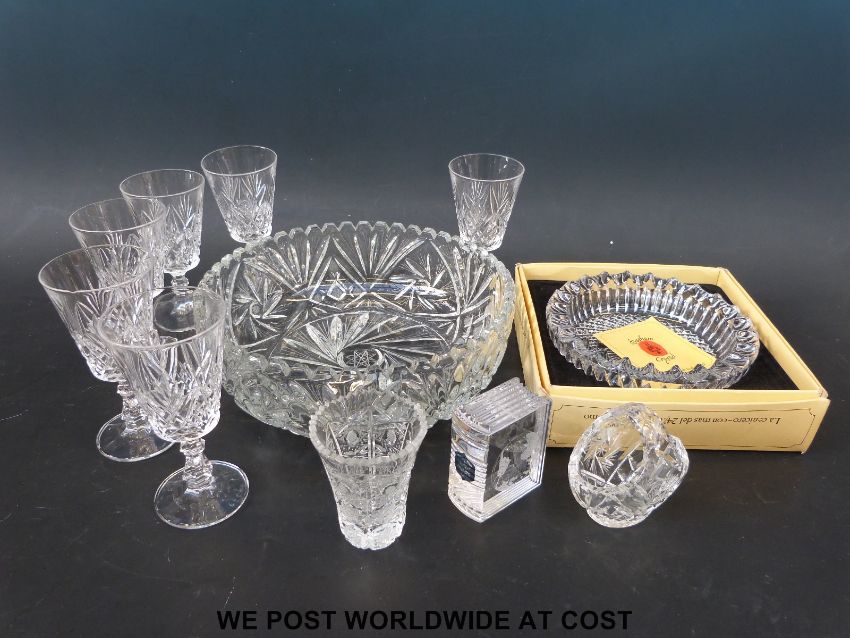 A collection of cut lead crystal glass to include fruit bowl, set of six glasses etc.