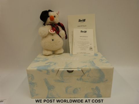 Steiff Original Teddy Bear 'Snowman', 036101, with white mohair, button to ear, tags and certificate 434/1500 21cm tall, in original box
