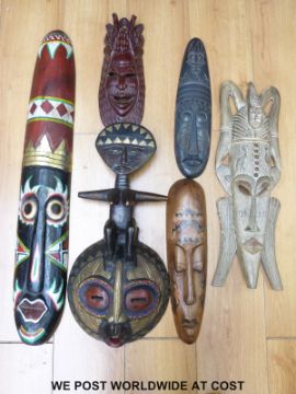 A collection of large tribal African masks