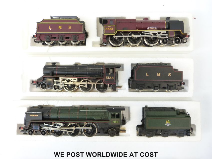 Three Hornby 00 gauge locomotives, LMS 4-6-0 Patriot Class 'Duke of Sutherland' R311, LMS 4-6-0 Class 5 '5138' R320 and BR 4-6-2 Class 7MT 'Morning Star' R033, all in original boxes
