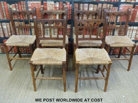 A set of six rush seated chairs