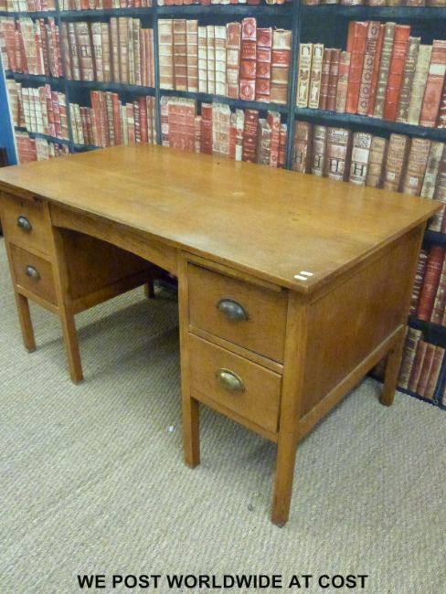 A light oak twin pedestal desk (W137 x H76 x D77cm)