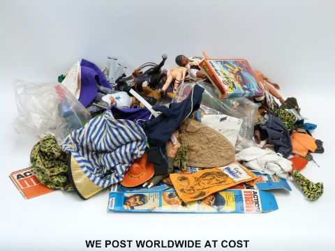 A large collection of Action Man and similar action figures and accessories