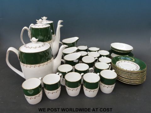 A quantity of Spode 'Green Velvet' china comprising two coffee pots, two cream jugs, two sugar basins, a tea pot, milk jug, coffee cans and saucers