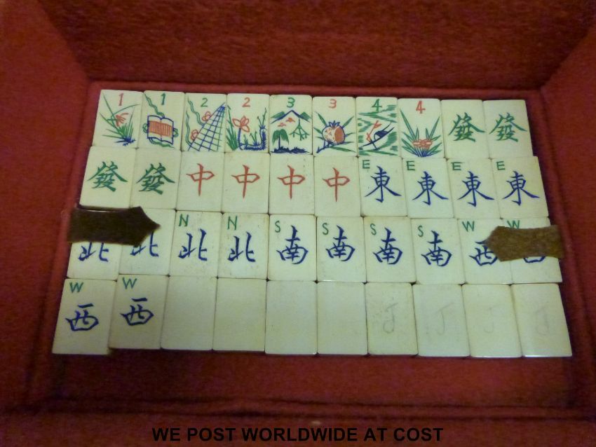 An early 20th Century Wing Fat Cheong Mah Jong set in leather case.