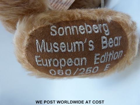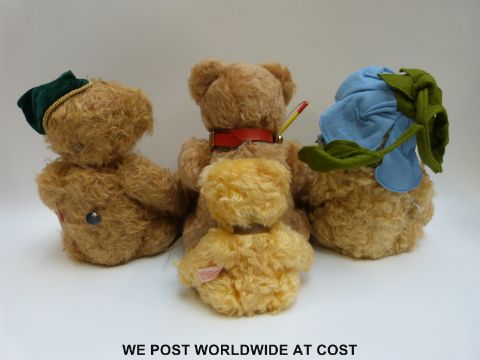 Four Hermann Original Teddy bears, all limited edition, Sonneberg Museums Bear 2005 060/250, Forget-me-not flower bear 171/500, Weihnachtsbar and one other