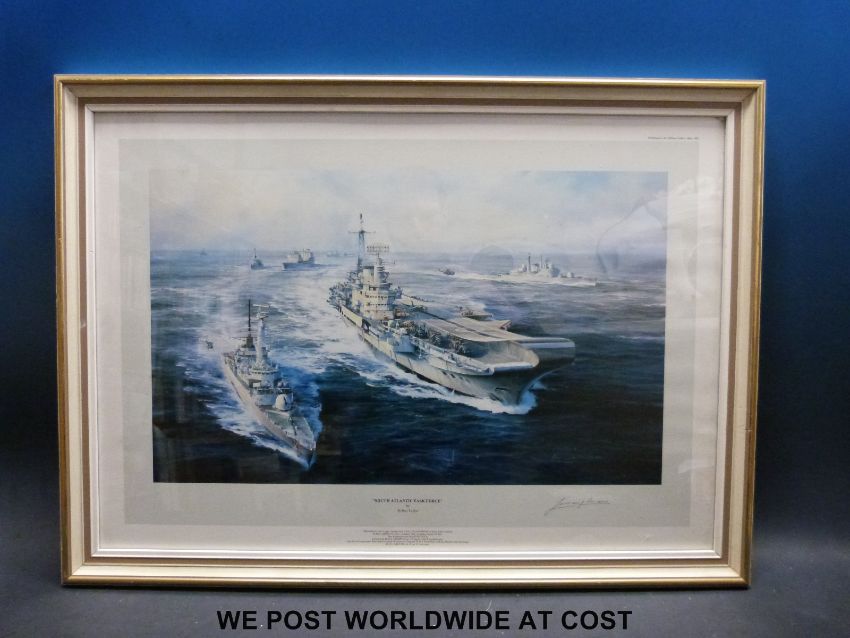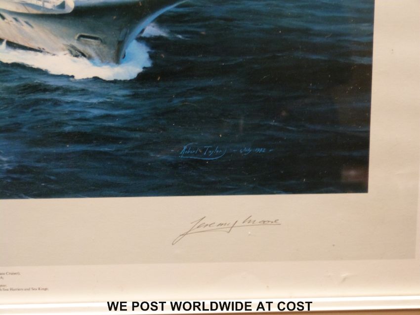 A framed print ' South Atlantic Task Force' by Robert Taylor, signed by Jeremy Moore to border (43 x 61cm)