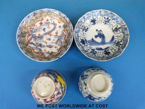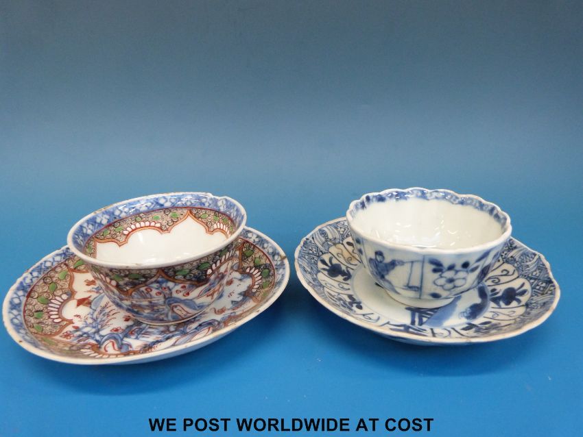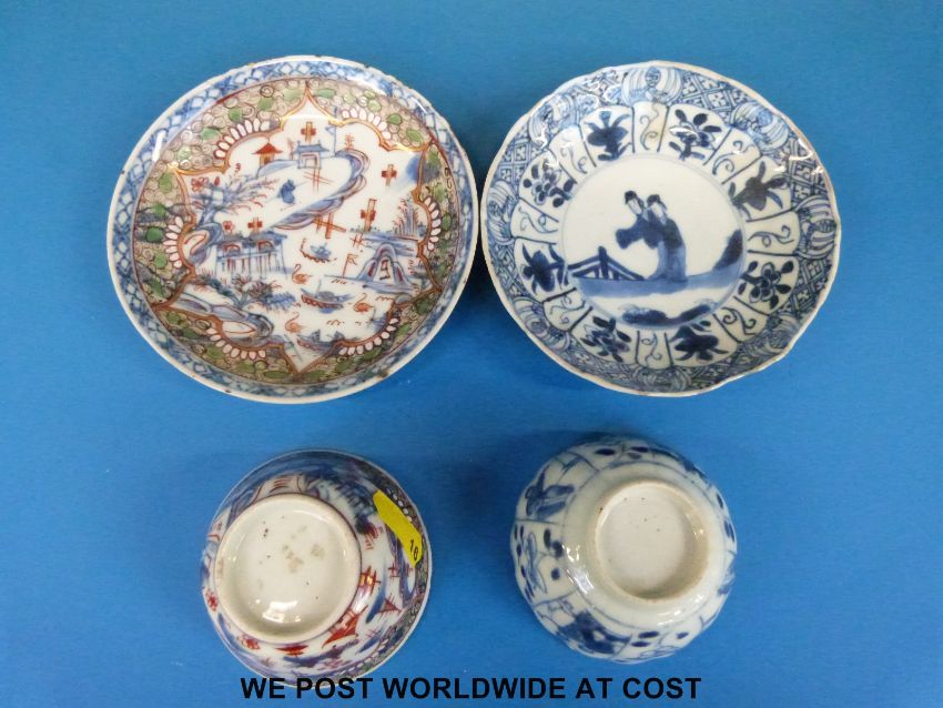 An 18thC Chinese tea bowl and saucer and a Chinese Kangxi tea bowl and saucer
