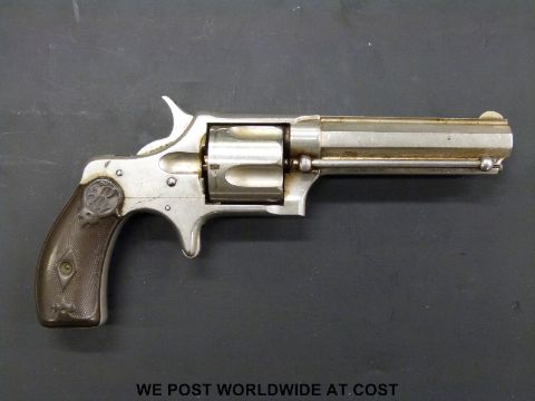Remington Smoot .38 five shot rimfire revolver with 3.5 inch named octagonal barrel and moulded bakelite grips, c1870 (overall length 22cm).