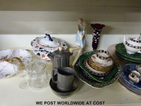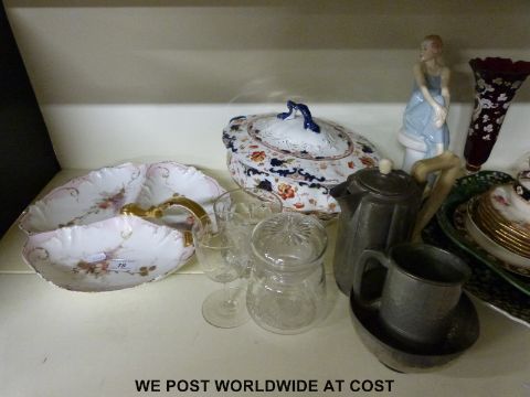 A collection of ceramics to include Chinese dish, majolica plate, Limoges dish, pedestal tureen, Royal Doulton 'Flirtation' from the Reflections series etc
